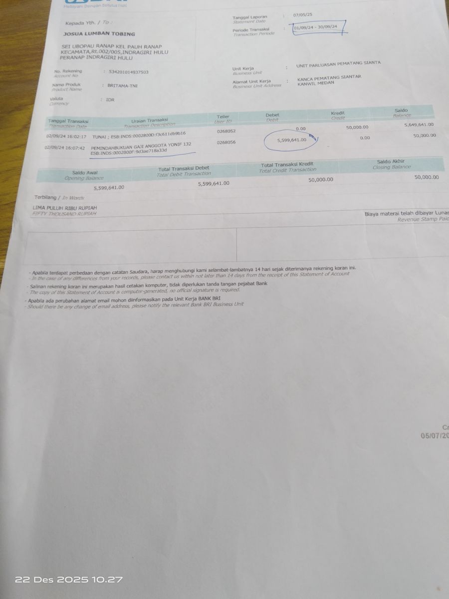 Hingga berita ini diterbitkan, pihak BRI Kampar belum memberikan keterangan resmi terkait dugaan penarikan dan pemindahan dana tabungan tersebut. (*)
