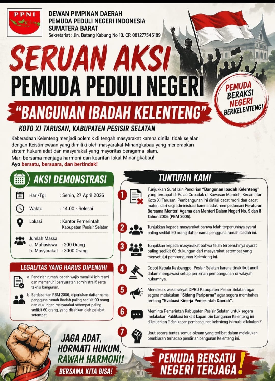 Sementara itu, Kepala Badan Kesbangpol Pesisir Selatan, Marzan, mengaku telah mengetahui informasi tersebut, namun belum memberikan keterangan rinci.